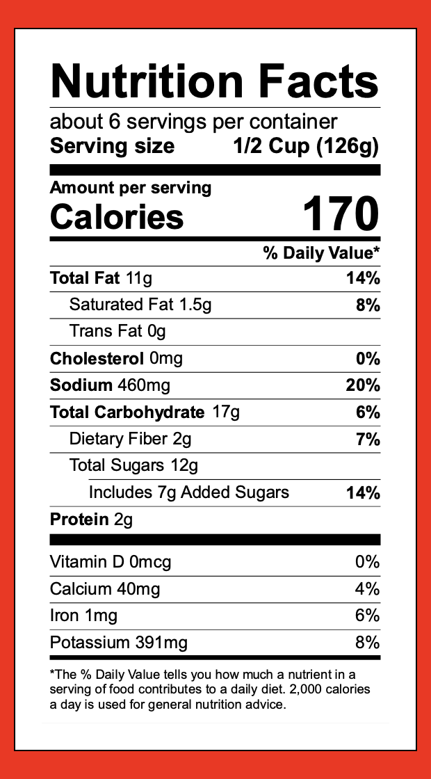 Diced Tomatoes, Tomato Puree, Yellow Onion, Extra Virgin Olive Oil, Honey, Water, Tomato Paste, Garlic, Contains 2% or Less Of: Sea Salt, Red Wine Vinegar, Red Pepper, Black Pepper, Oregano.