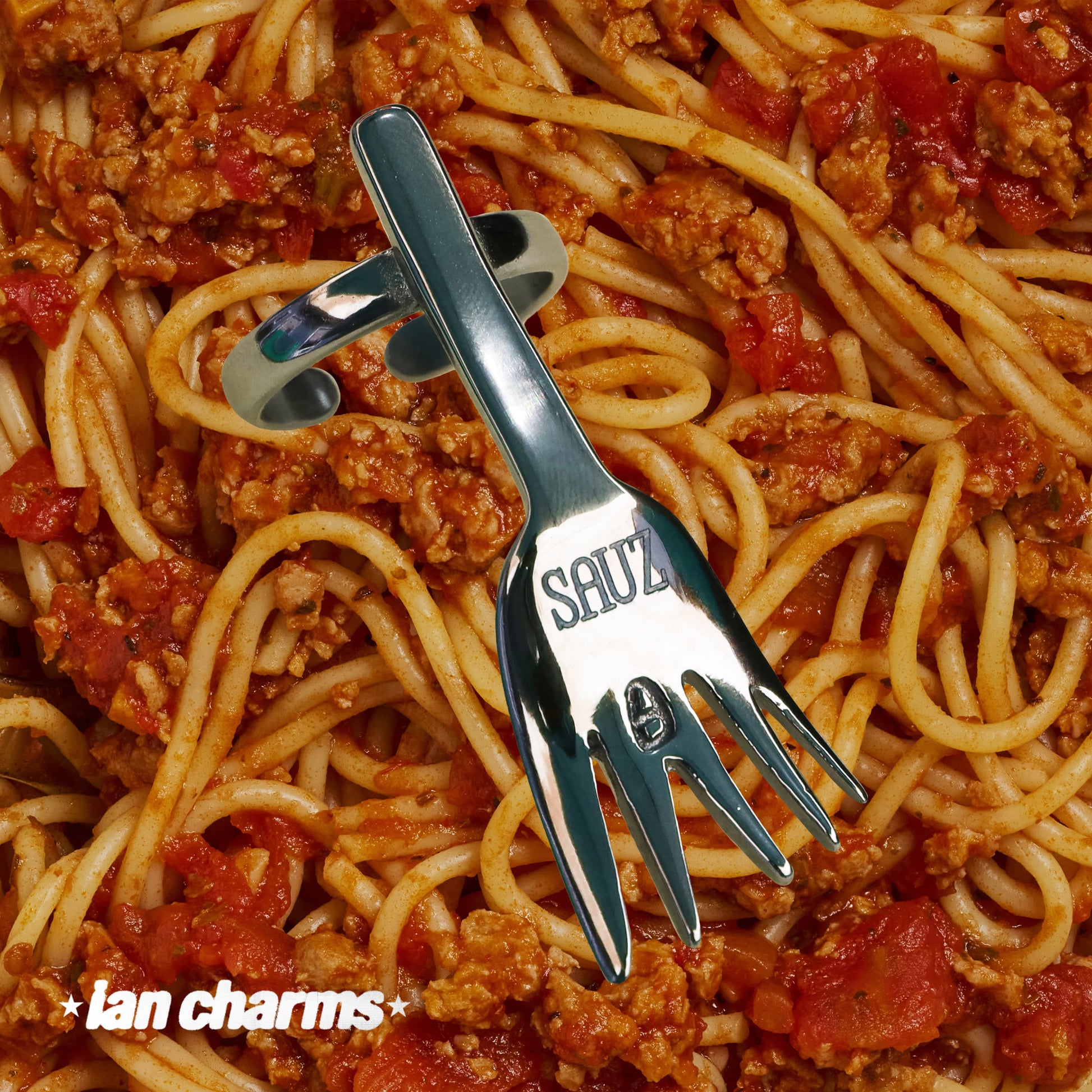 Meet the limited edition Ian Charms x SAUZ Finger Fork! This adjustable, steel, fork ring makes every dinner a little more fun.